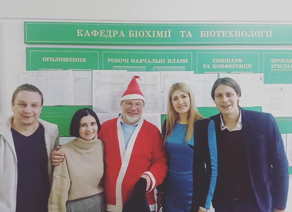 « У середу 19 грудня нашу кафедру відвідав хто б ви думали – сам Миколай! У вигляді професора Володимира Івановича Лущака він дарував всім чемним студентам та викладачам подарунки а нечемним… Таких в той день на кафедрі не було. В цей чудовий день у всіх на кафедрі сяяли посмішки. Приєднуйтесь до нашого дружнього колективу із нами весело. Також нашу кафедру відвідав Андрій Мірошниченко – активіст, менеджер з біотехнологій, письменник та просто хороший хлопець. представник громадської спілки “Центр інновацій “Сходи в майбутнє”: Пан Андрій розповів про цикл розробки та трансферу інновацій. У ході лекції було розказано власне про цикл розробки від ідеї і до продукту, а також про глобальні проблеми людства у сфері охорони здоров’я та як науковці спільними зусиллями ідуть до їх вирішення»