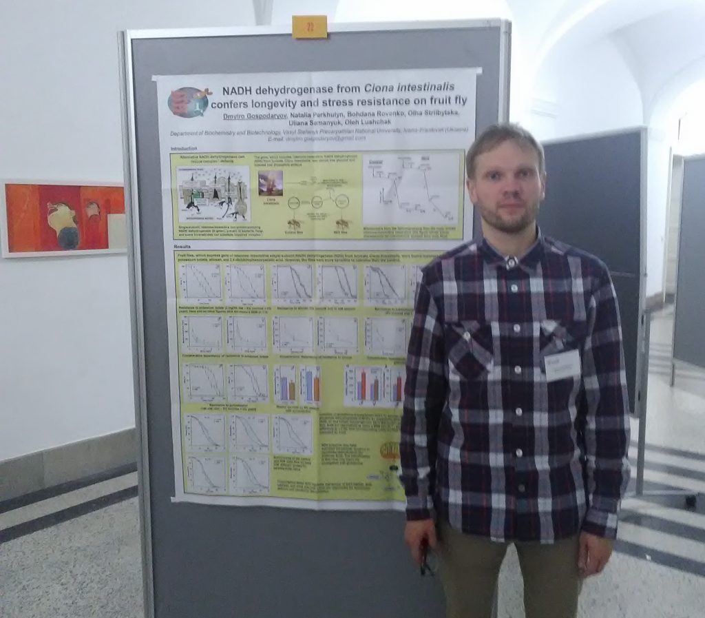 В Інсбруку Дмитро представив усну доповідь на тему «Alternative NADH dehydrogenase extends lifespan and increases resistance to xenobiotics in Drosophila», а також аналогічний постер. Учасниками курсу були дослідники з Австрії, Німеччини, Італії, Іспанії, Швейцарії, Франції, Росії та Сполучених Штатів Америки. Знову ж таки, Дмитро був єдиним представником від України.