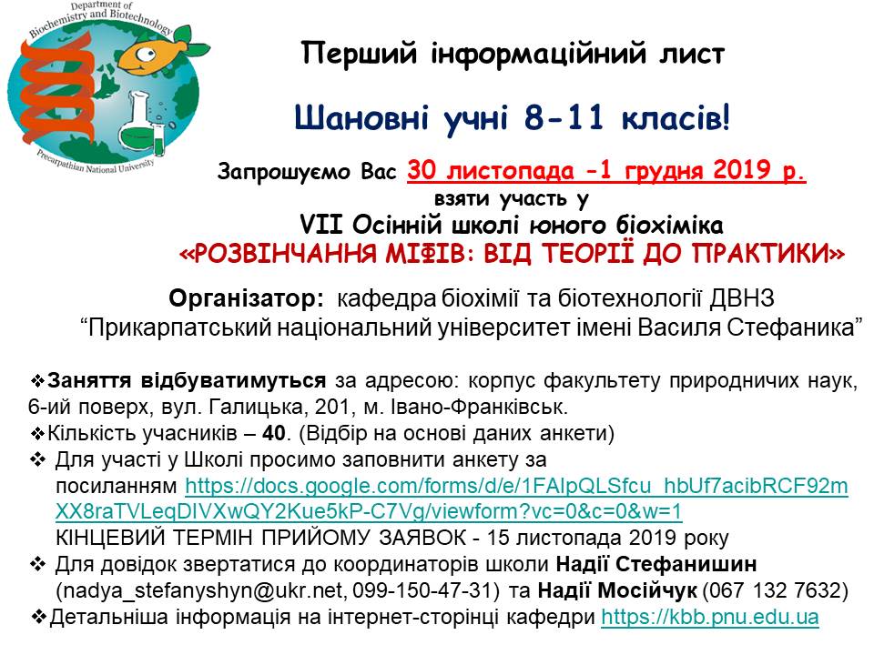 ❖Детальніша програма Осінньої школи згодом на інтернет-сторінці кафедри https://kbb.pnu.edu.ua (Тел. +38 (0342)596171)
