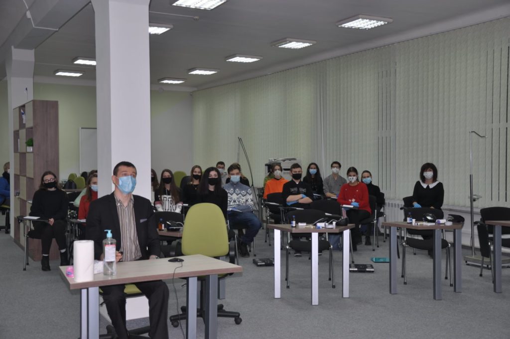 Провели захід співробітники проєкту Іван Твердохліб та Олександра Абрат. Під час тренінгу студенти мали змогу удосконалити навички по оцінці базових показників здоров’я (температура тіла, артеріальний тиск,співвідношення ріст/вага); визначенню показників ризику надлишкової ваги та ожиріння (індекс маси тіла та відсоток вісцерального жиру, відсоток м’язової маси, величина жирової складки, об’єм талії тощо); а також основного показника ризику розвитку цукрового діабету (рівень глюкози в крові).