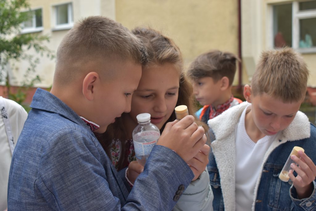 Загалом, було дуже радісно побачити біля нашого столика юрбу школярів, які навіть під парасолями проявляли живий інтерес до демонстрованих дослідів та наших піддослідних тваринок.