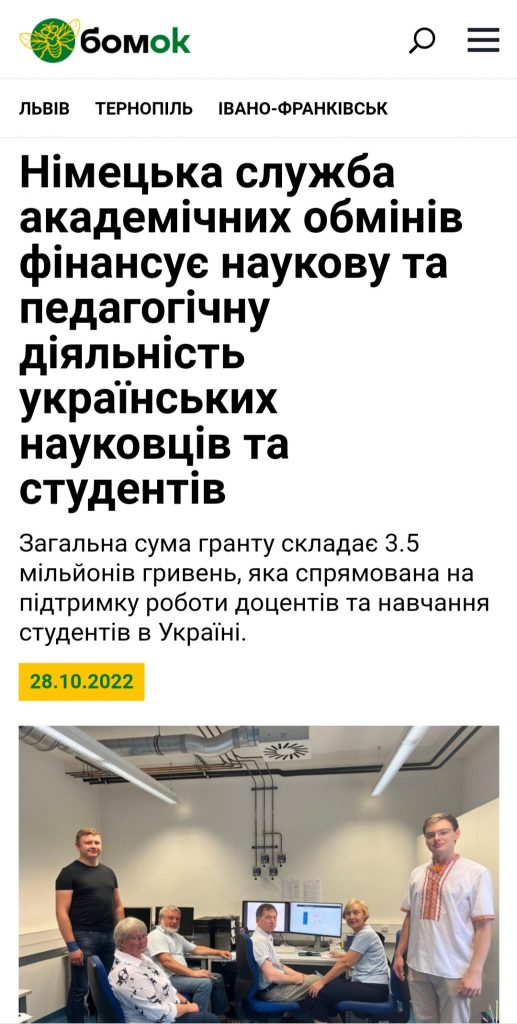 Програма отримала фінансову підтримку Німецької служби академічних обмінів (Deutsche Akademische Austauschdienst, DAAD). Грошове забезпечення від німецької організації націлене на підтримку наукової та педагогічної діяльності українських викладачів та на навчання студентів в Україні.