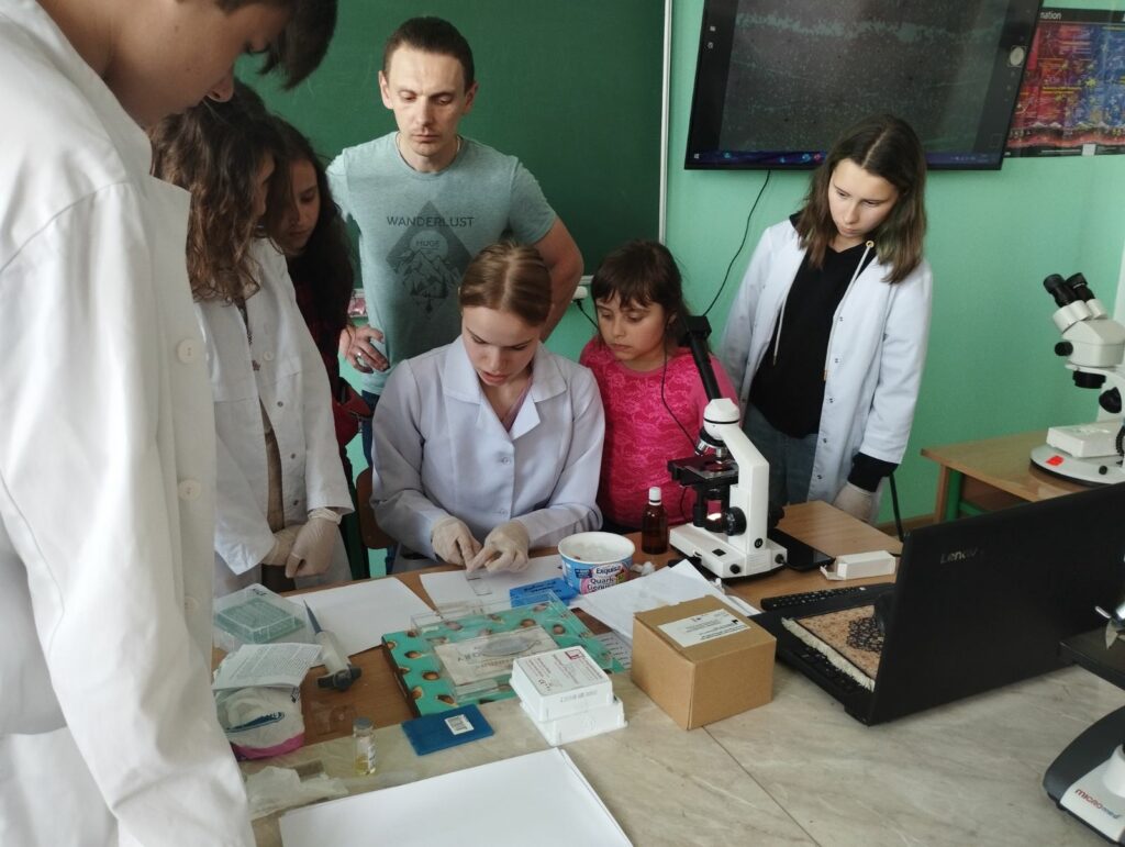 * Наукові напрямки на кафедрі біохімії та біотехнології активно розвиваються. Один з нових перспективних напрямків – це мікроклональне розмноження рослин – розмноження рослин in virto (у пробірці). Про мікроклональне розмноження розповів доцент Віктор Гусак. Діти дізналися, що за допомогою мікроклонального розмноження можна з однієї рослини отримати тисячі екземплярів. Це особливо актуально для рослин, які повільно розмножуються або є рідкісними, а також для отримання посадкового матеріалу сільськогосподарських рослин у достатній кількості. Нас дуже зацікавив даний вид діяльності !