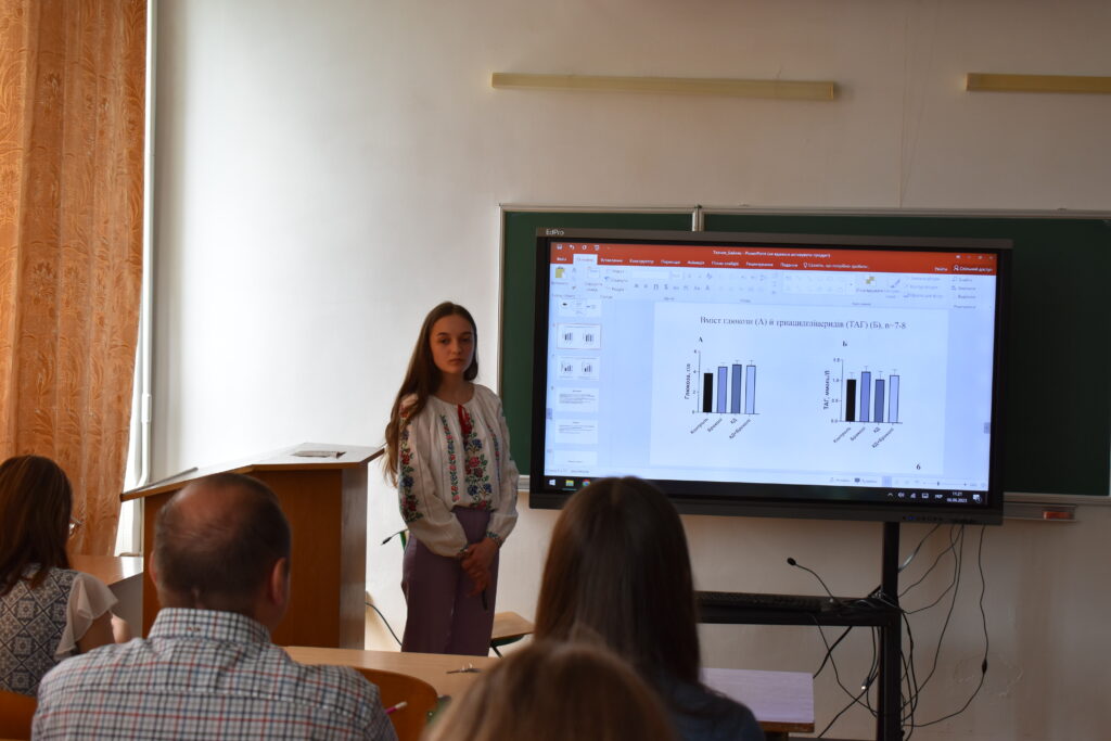 У вівторок, 6 червня 2023 року, відбувся захист курсових робіт студентів-біохіміків 3-го курсу освітньої програми «Біохімія, біотехнологія та методологія біологічних досліджень». Були продемонстровані дуже цікаві та важливі теми. Дослідження проводилися як in vitro, так і in vivo на мишах або рослинах. Захист тривав близько 4-х годин, протягом яких було розглянуто 8 робіт. Більшість з них були присвячені вивченню впливу висококалорійних дієт на організм мишей та способів коригування негативних станів, викликаних цими дієтами. Також студенти досліджували та удосконалювали методи мікроклонального розмноження рослин.