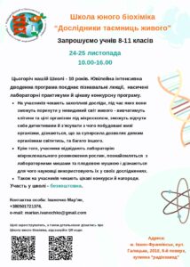 Кафедра біохімії та біотехнології провела ювілейну Школу юного біохіміка