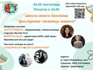 Протягом 24-25 листопада на факультеті природничих наук проходила Школа юного біохіміка «Дослідники таємниць живого». У Школі взяло участь 72 школярів з м. Івано-Франківська та Івано-Франківської області (Калуш, Надвірна, Бурштин, Городенка, Вигода). Осіння Школа юного біохіміка – профорієнтаційний та просвітницький захід read more