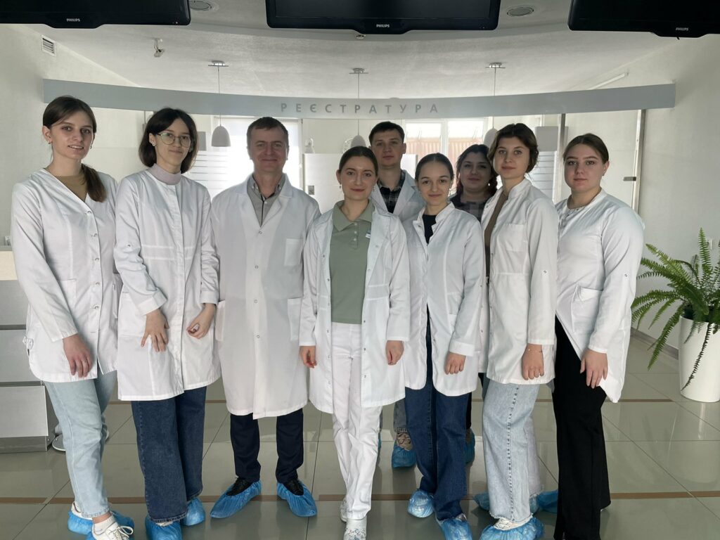 Студенти 4-го курсу (ОП «Біохімія, біотехнологія та методологія біологічних досліджень») кафедри біохімії та біотехнології, під керівництвом доцента кафедри Віктора Гусака, 2-го квітня відвідали клінічний лікувально-діагностичний центр «СІМЕДГРУП». Біохіміки КЛДЦ «СІМЕДГРУП» Галина Дорошенко і Марія Кошка, провели дуже цікаву та пізнавальну екскурсію лабораторіями центру, показавши, як відбувається аналіз відібраних зразків на визначення різних показників. Наприклад: загальний аналіз крові з формулою, загальний аналіз сечі, цукор крові, коагулограма, біохімія (загальний білок, печінкові проби, ниркові проби, білірубін, електроліти, холестерин, маркери вірусних гепатитів). Окрім цього, студенти були ознайомлені з роботою сучасного німецького обладнання фірми Siemenes , що використовуються для діагностики зразків, а саме: імунохемілюмінесцентний аналізатор, E-lyte Plus та інші.