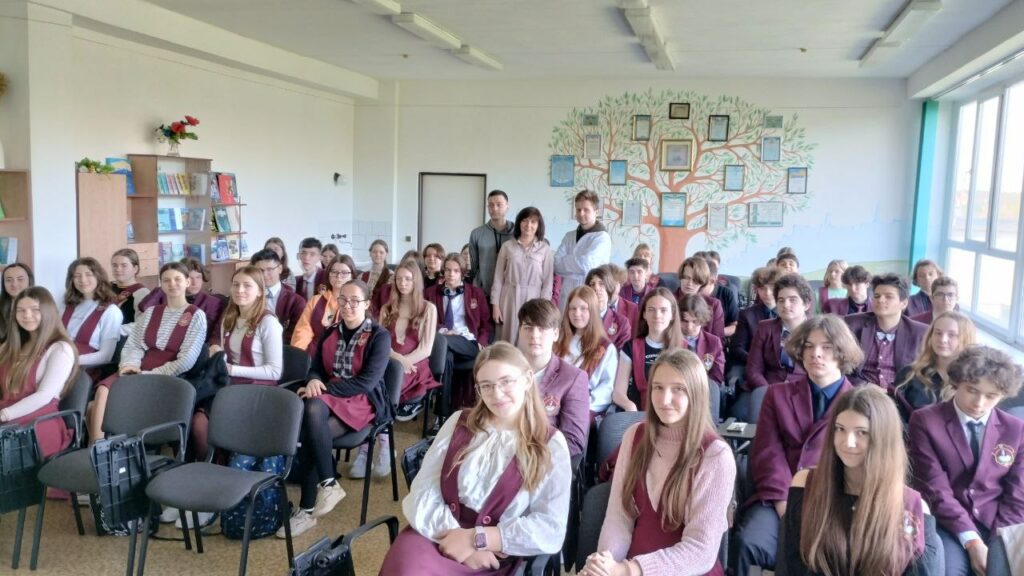 На запрошення вчителів біології Української гімназії №1 м. Івано-Франківська (нині ліцей імені Миколи Сабата) заступниця декана факультету природничих наук, доцентка кафедри біохімії та біотехнології Олександра Абрат, разом із колегами аспірантами Мар’яном Іваночко та Владиславом Березовським, провели захоплюючий профорієнтаційний захід.