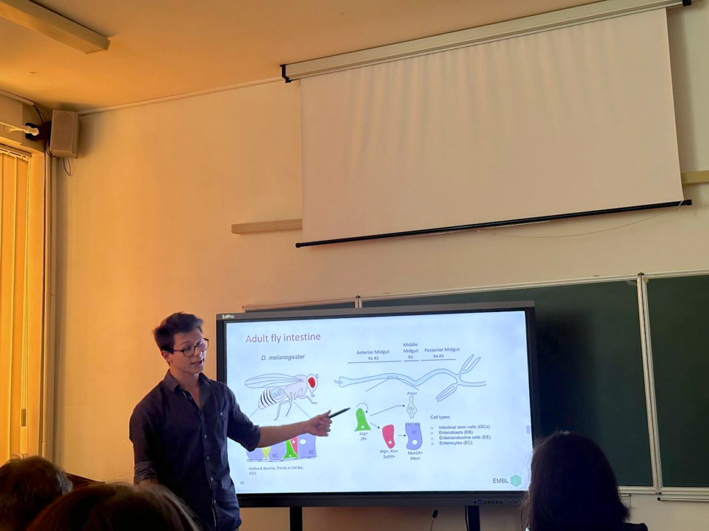 Тема дослідження магістранта – аналіз поодиноких клітин кишечника дрозофіли для визначення швидкості РНК. Цей біоінформатичний метод дозволяє вивчати динаміку експресії генів на рівні окремих клітин з високою точністю. Використання дрозофіли як модельного організму дає можливість отримати важливі дані, які можуть бути застосовані для розуміння подібних процесів у інших організмів, включаючи людину.
