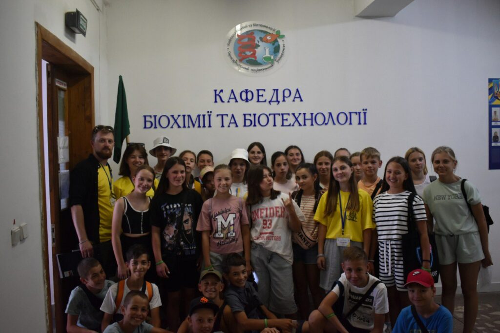 26 червня кафедру біохімії та біотехнології відвідали вихованці Дитячого табору “Світло світу”, організованому при Соборі Преображення Господнього (м. Івано-Франківськ). Аспірант Іваночко Мар’ян провів екскурсію для понад 80 дітей і їх вихователів лабораторіями кафедри, а також розповів про особливості роботи біохіміків та біотехнологів, використання мишей, дрозофіл і рослин в експериментальних дослідженнях, переваги навчання та успіхи в роботі кафедри. Сподіваємося, що сьогоднішній досвід розкриє в дітей прагнення поглиблено вивчати біологію на благо науки в Україні.