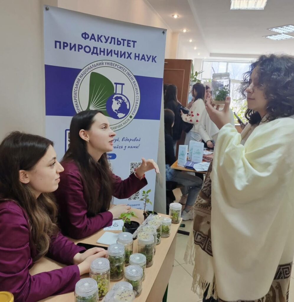 Студентки третього і четвертого кусу Задарко Вікторія та Николишин Вікторія, під керівництвом доцента Віктора Гусака, гідно представили факультет природничих наук та кафедру біохімії та біотехнології. Вони розповіли учасникам про напрям «Біотехнологія рослин», особливості мікроклонального розмноження та його перспективи.