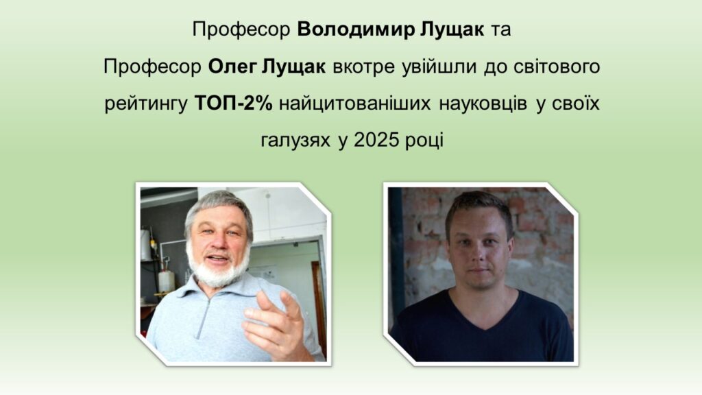 Професори кафедри біохімії та біотехнології КНУВС Володимир Лущак та Олег Лущак знову увійшли до престижного рейтингу TOP-2% найбільш впливових науковців світу, який щороку формують дослідники Стенфордського університету (США) у співпраці з видавництвом Elsevier.
