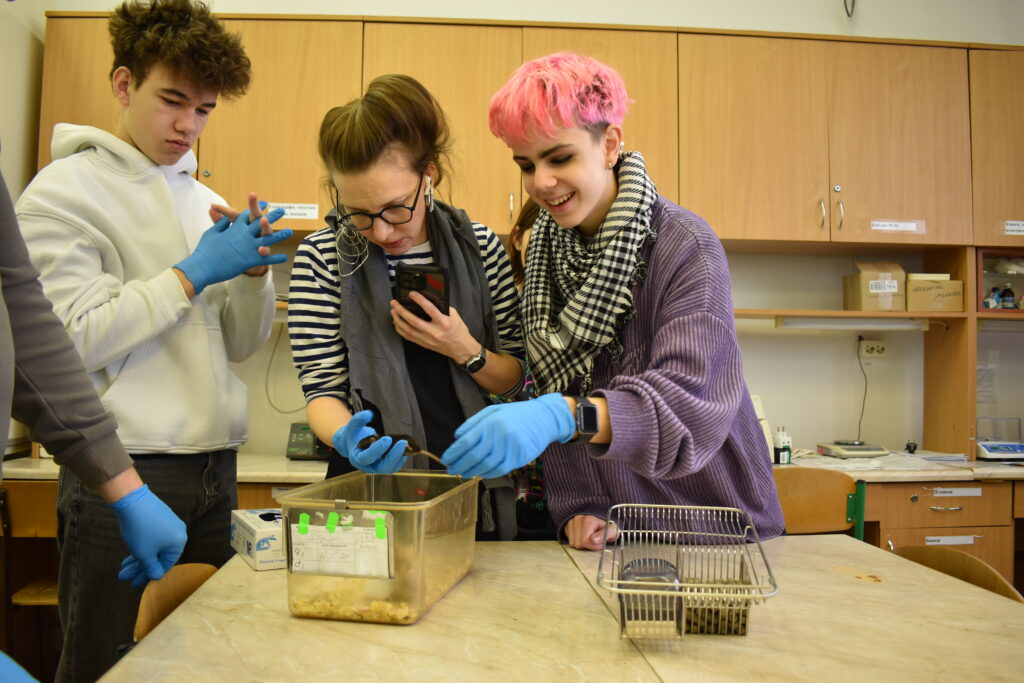Під час візиту учні мали можливість побачити лабораторних мишей, дізнатися, в яких умовах їх утримують та які актуальні наукові дослідження проводяться на кафедрі і у світі з використанням цього модельного об’єкта. Не менше зацікавлення викликали плодові мушки Drosophila melanogaster — школярі ознайомилися з особливостями їх утримання та важливістю для біомедичних досліджень.