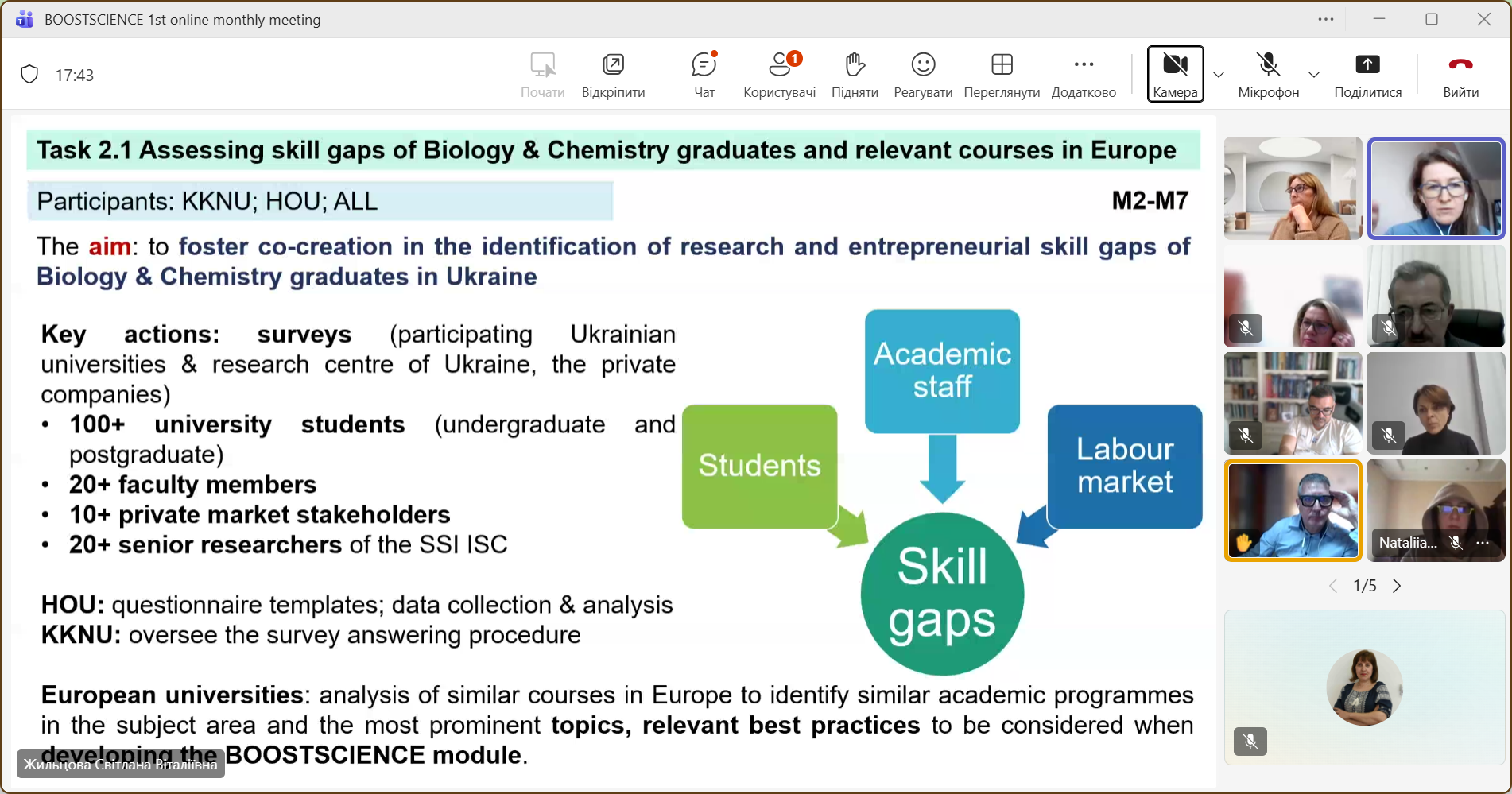 Під час обговорення партнери зосередили увагу на ключових завданнях, зокрема на розробці опитувальника для визначення освітніх потреб студентів та представників бізнесу у галузях біології та хімії. Також було приділено увагу стратегіям ефективного поширення інформації про активності та результати проєкту.