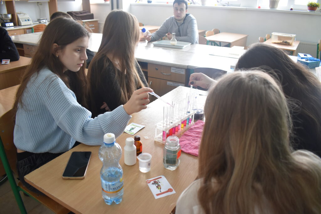 Під час інтерактивної частини відвідувачі виконали кілька простих біохімічних експериментів: спостерігали зміну забарвлення екстракту червоноголової капусти та провели дослід “дріжджовий вулкан”. Це дозволило школярам на практиці відчути основи лабораторної роботи та побачити, як наука поєднує теорію з експериментом.