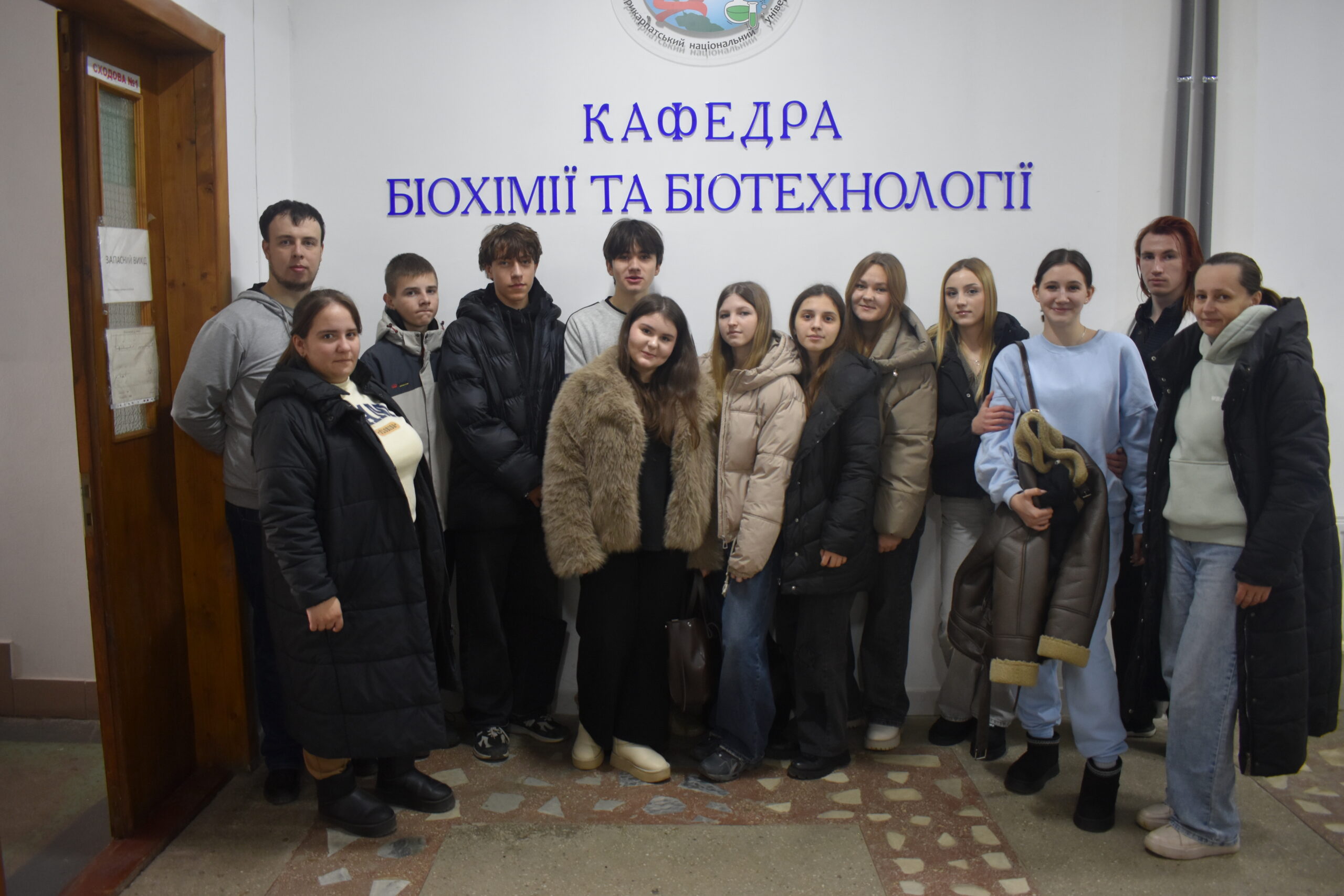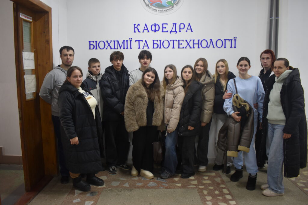 До кафедри біохімії та біотехнології завітали учні 10-х класів біотехнологічного спрямування Бурштинського ліцею імені Ольги Басараб. Для школярів була проведена профорієнтаційна екскурсія, яку організували асистент кафедри Олег Дем’янчук та старший лаборант Євген Андрощук.