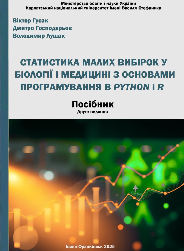 Наші колеги – доценти Віктор Гусак та Дмитро Господарьов та професор Володимир Лущак підготували оновлене та суттєво доповнене видання посібника зі статистики в біології і медицині. У навчальному посібнику описані та пояснені основні методи статистичного аналізу даних, зокрема тих, які отримуються у дослідженнях в галузях медицини та біології. Найбільше уваги приділено методам параметричної і непараметричної статистики, дисперсійного, кореляційного та регресійного аналізів. Подані критерії оцінки ймовірності різниці між середніми, в тому числі і для множинних порівнянь. Проаналізовані основні комп’ютерні програми, які часто використовуються для обробки даних. Теоретичний матеріал супроводжується великою кількістю професійно спрямованих прикладів і задач для самостійної роботи.