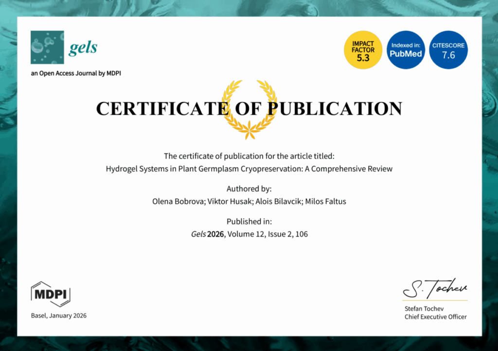 Робота виконана у співпраці з чеськими та українськими науковцями, які представляють Czech Agrifood Research Center (Plant Physiology and Cryobiology Team, м. Прага, Чеська Республіка) та Інститут проблем кріобіології і кріомедицини НАН України (відділ кріобіофізики, м. Харків), що вкотре підкреслює ефективність міжнародної наукової кооперації.