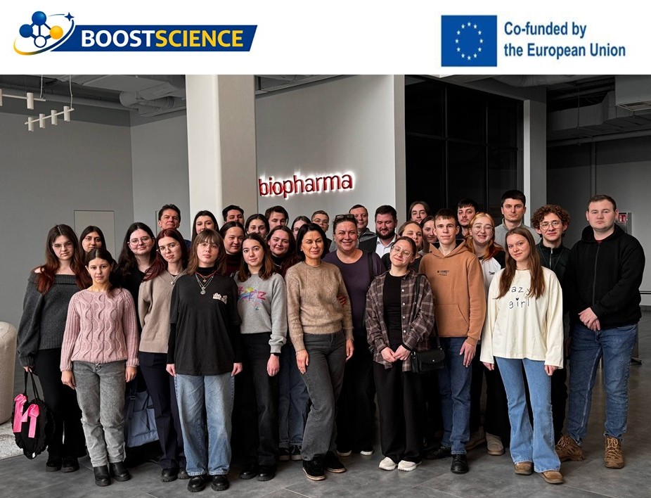 У період з 26 лютого по 1 березня 2026 року студенти спеціальності «Біологія та біохімія» – від першокурсників до магістрантів – Карпатського національного університету імені Василя Стефаника здійснили навчально-професійну поїздку до міста Біла Церква. Візит відбувся під наставництвом професора Володимира Лущака та доцента Володимира Швадчака й поєднав у собі знайомство з сучасним фармацевтичним виробництвом, професійне спілкування та командну взаємодію студентів. Подія відбулася в межах проєкту Erasmus+ Programme ERASMUS-EDU-2025-CBHE – BOOSTSCIENCE «Enhancing the Quality of Education and Entrepreneurial Thinking in Natural Sciences in Ukraine», що спрямований на підвищення якості освіти та розвиток підприємницького мислення в галузі природничих наук в Україні.