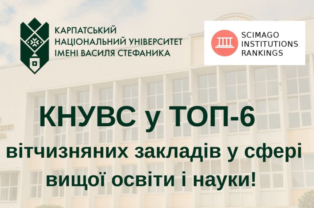 За оновленими офіційними даними, опублікованими на сайті Scimago Institutions Rankings, у 2026 році Карпатський університет піднявся на три позиції і сьогодні посідає 6 місце в авторитетному міжнародному рейтингу Scimago серед 75 ЗВО та науково-дослідних установ України.