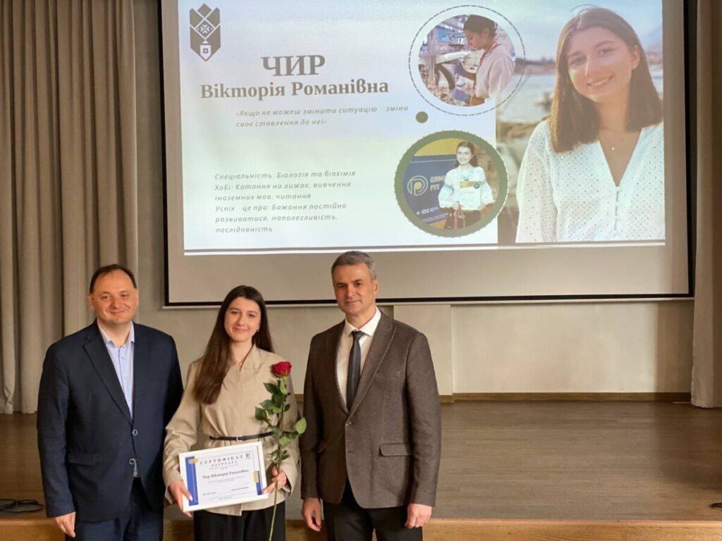 25 березня 2026 року відбулося урочисте нагородження студентів закладів вищої освіти, які досягли вагомих успіхів у навчанні та науковій діяльності. Серед відзначених — студентки кафедри біохімії та біотехнології Вікторія Чир (студентка 1 курсу) та Христина Федів (магістрантка 1 курсу).