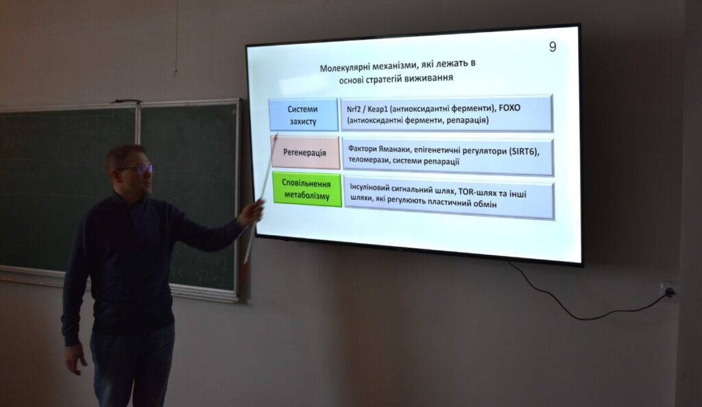 У доповідях доцента Дмитра Господарьова було розглянуто стратегії виживання організмів, тоді як доцент Володимир Швадчак представив результати розробки флуоресцентних барвників для детекції амілоїдних фібрил. Доцент Віктор Гусак окреслив сучасні напрями розвитку біотехнології рослин.