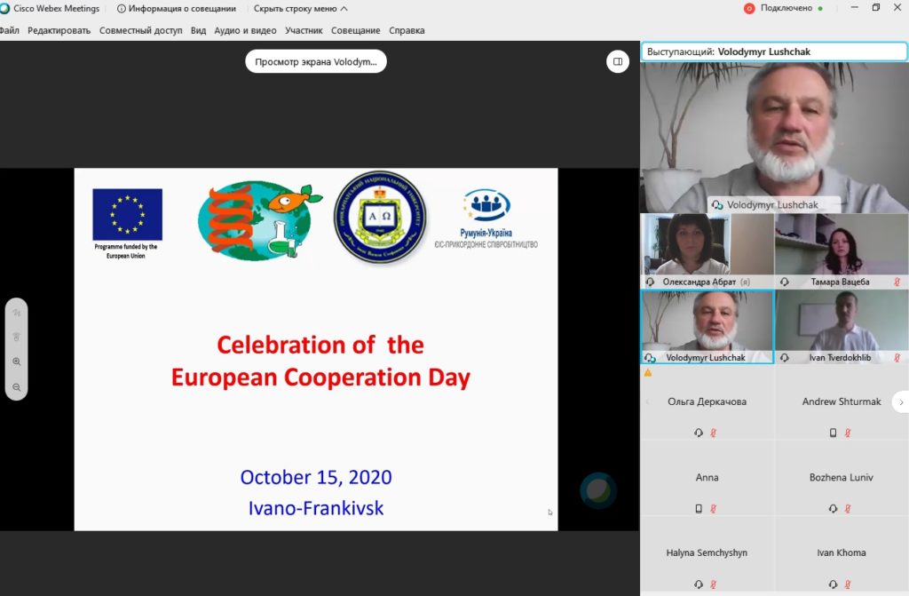 At October 15, 2020 European Cooperation Day was celebrated.  A dedicated webinar was held as part of the celebration. The webinar spreaded the information about European Cooperation, its achievements, history, and purpose, as well as activities being made to increase the communication and understanding between European countries. Participants were also provided information about joint Romanian-Ukrainian programme of health education and its aims.