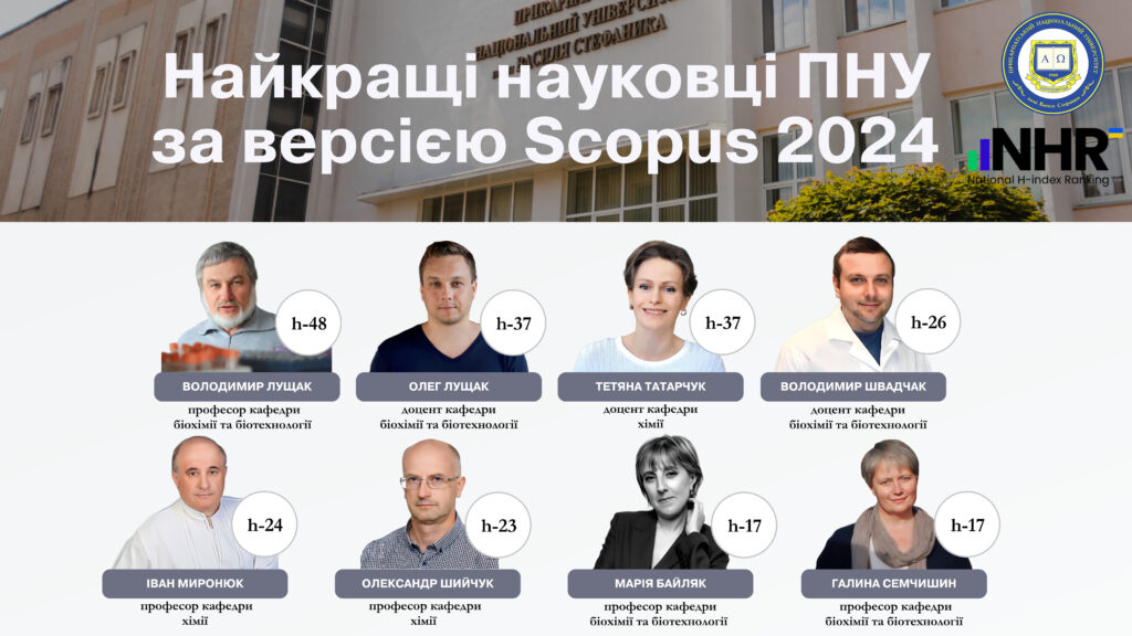 Volodymyr Lushchak – Professor of the Department of Biochemistry and Biotechnology with h-index 48;