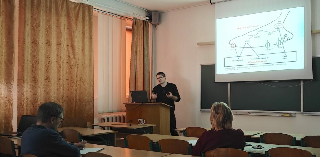 Serhii Beschasnyi, Associate Professor of the Department of Human Biology and Immunology at Kherson State University, presented the findings of his research on gas transmitters at the Department of Biochemistry and Biotechnology of PNU. Since June of this year, Serhii Beschastnyi, PhD, Associate Professor from Kherson State University, has been working at our department. As a result of the shelling in Kherson, their laboratory facilities were severely damaged, making it impossible to conduct further research on-site.
