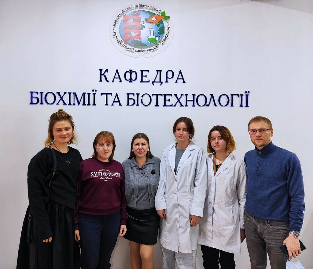 Professor Bayliak, along with students Olha and Diana, shared insights into their success in developing bacterial cellulose films and highlighted the unique properties of this material. Associate Professor Gospodaryov showcased samples of untreated bacterial cellulose and fungal mycelium films currently available at the Department.