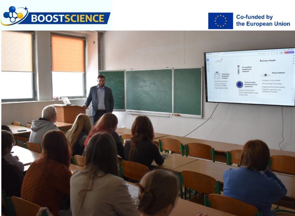 Within the framework of the Erasmus+ Programme ERASMUS-EDU-2025-CBHE – BOOSTSCIENCE “Enhancing the Quality of Education and Entrepreneurial Thinking in Natural Sciences in Ukraine,” a working meeting with a stakeholder, a representative of the biotechnology company Preci,  was held at the Department of Biochemistry and Biotechnology, Faculty of Natural Sciences, Vasyl Stefanyk Carpathian National University.